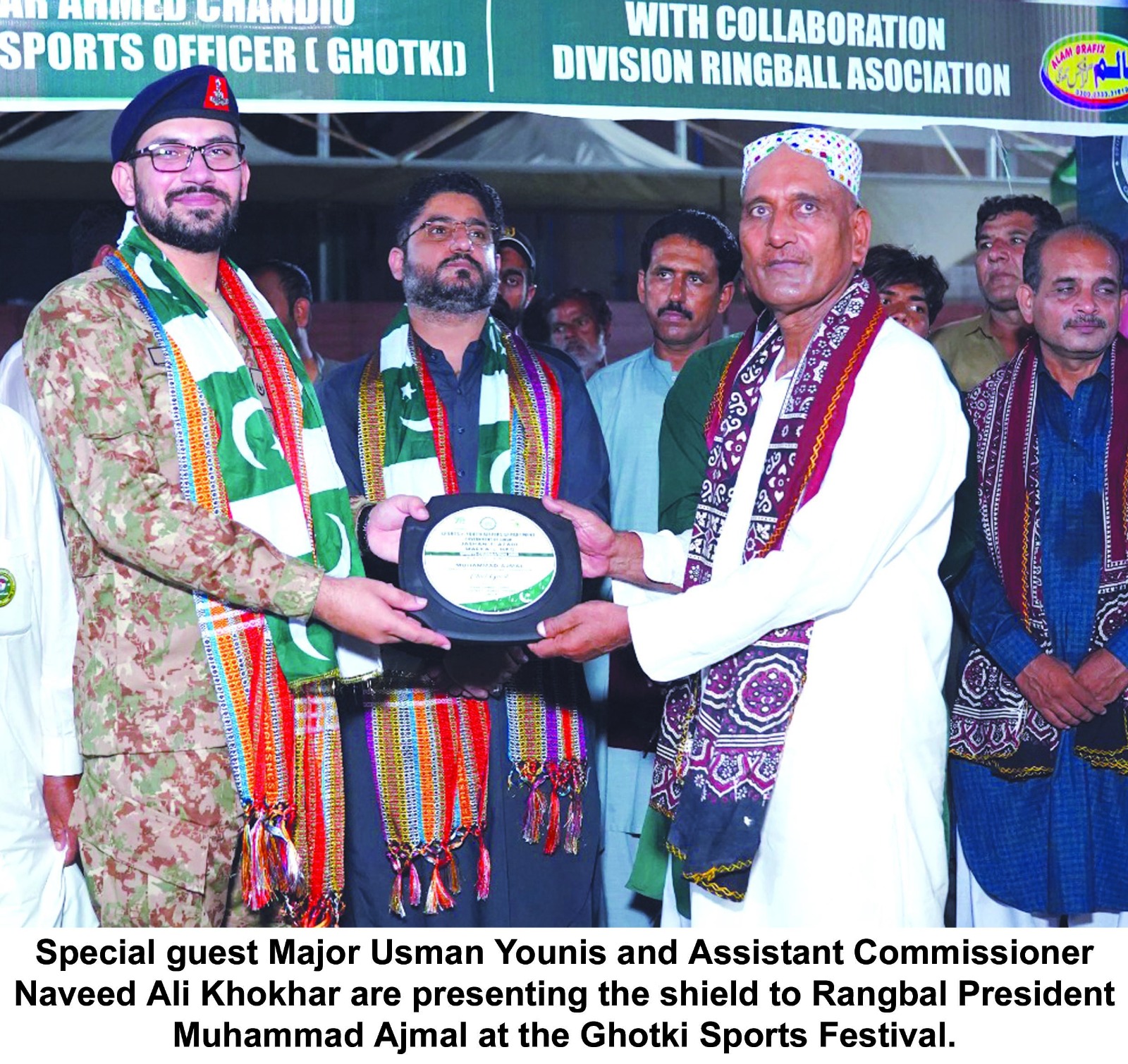 Karachi : A sports festival was organized by the Sports and Youth Affairs Department of Sindh in Ghotki at Sardar Ali Muhammad Khan Mehar Sports Complex on the occasion of Independence Day and the struggle for justice. The ceremony began with the singing of the national anthem and the national flag of Pakistan was also hoisted. Major Usman Younus, Assistant Commissioner Ghotki Naveed Ali Khokhar, Deputy Director Sports Mir Muhammad Kalhoro, District Sports Officer Nisar Ahmed Chandio, Hameed-ur-Rehman, senior journalist Zafar Ahmed Siddiqui and others participated in the ceremony. Various types of sports were organized in the sports festival. The citizens thoroughly enjoyed the event, while the final match of the two-day Inter-Division Girls’ Ring Ball Championship Tournament was played between Sukkur and Shaheed Benazirabad. In which, after a brilliant competition, the Sukkur team defeated Shaheed Benazirabad to win the competition, while Karachi Division secured third position, after which the closing ceremony was held. In which Major Usman Younis, Assistant Commissioner Naveed Ali Khokhar distributed trophies, medals and cash prizes to the winners and runners-up teams of various sports at the end of the 4-day sports festival. Speaking to the media on this occasion, District Sports Officer Nisar Ahmed Chandio said that on the special instructions of Provincial Sports Minister Chief Sardar Muhammad Bakhsh Khan Mehar and Secretary Sports Munawar Ali Mahesar, various sports were organized in Ghotki district on the occasion of Independence Day and the Battle of Haq. In the closing ceremony, prizes were distributed among the winning and runner-up teams. He said that these events are being celebrated to celebrate the brilliant success of the Pakistan Army in Operation Battle of Haq and Bunyan Al-Marsoos and to raise the head of the country and nation with pride.