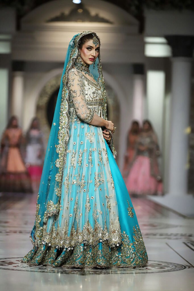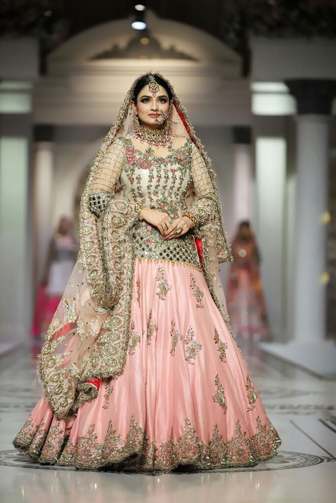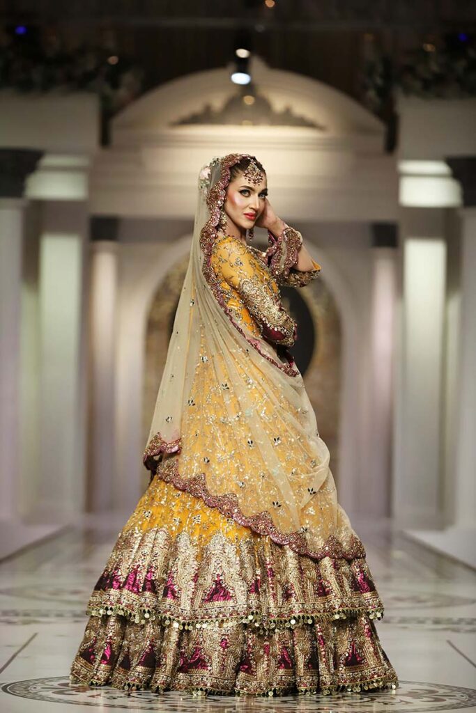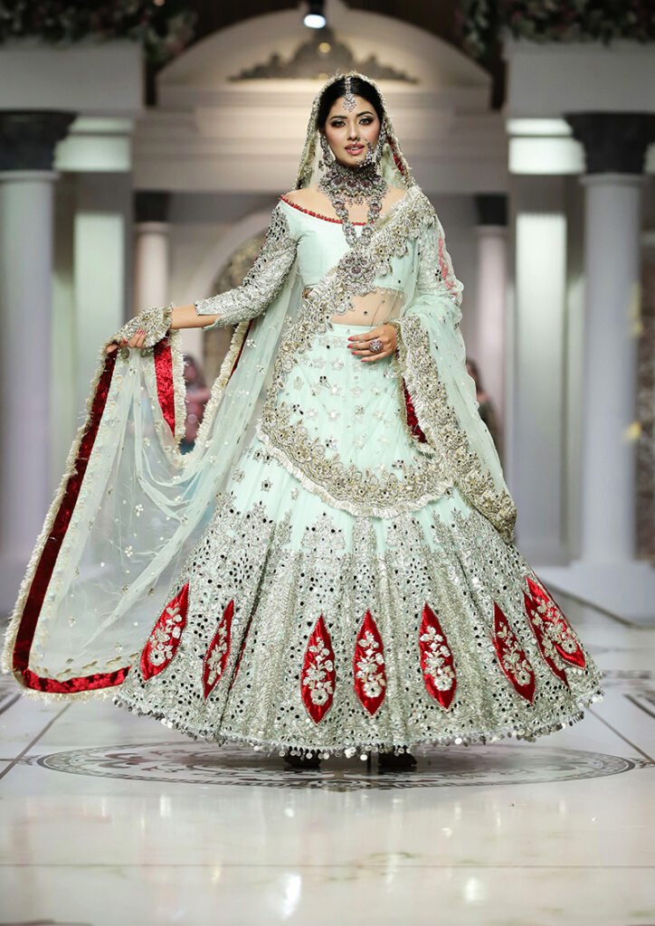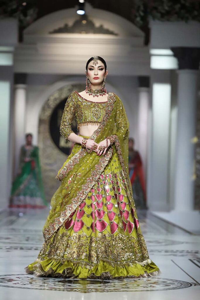 Like the brand’s debut showcase in HBCW which featured a long list of celebrities as showstoppers, Kashee’s solo show also had a fantastic line-up of celebrities sashaying down the catwalk. Film star Sana Fakhar opened the show for Kashee’s while TikTok star Rebecca, Madiha, Saba Faisal and Sarwat Gillani closed the Mayoon segment of the show. Shagufta Ejaz, Benita David, Nadia Hussain and Sehar walked as show-stoppers in the Mehndi segment, whereas Saba Faisal, Rebecca and Neelam Muneer graced the ramp in the Baraat segment. The final segment of the showcase was opened by Dr Shaista Lodhi, whereas Suneeta Marshal, Sana Fakhar and Benita also graced the catwalk. The show came to an end as the ever gorgeous Reema Khan walked down the ramp in thunderous applause by the attendees.