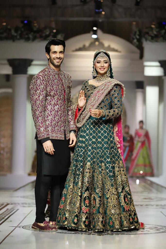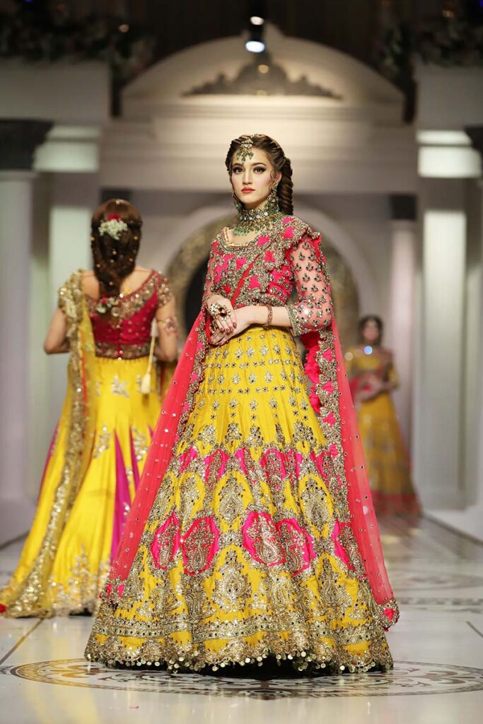 Keeping in mind the wedding festivities of the subcontinent, the showcase was divided into four parts, featuring a wide range of designs for Mayoon, Mehndi, Baraat and Valima. The collection was an ode to our rich culture and traditions. All the designs embedded beautifully crafted floral motifs in Zari and Swaroaski crystals and traditional embroidery work. The pieces were a perfect combination of traditional sensibility, cut and tailored with a modern edge. The colour palette shuffled between vibrant tones of wedding festivities and the classical red.