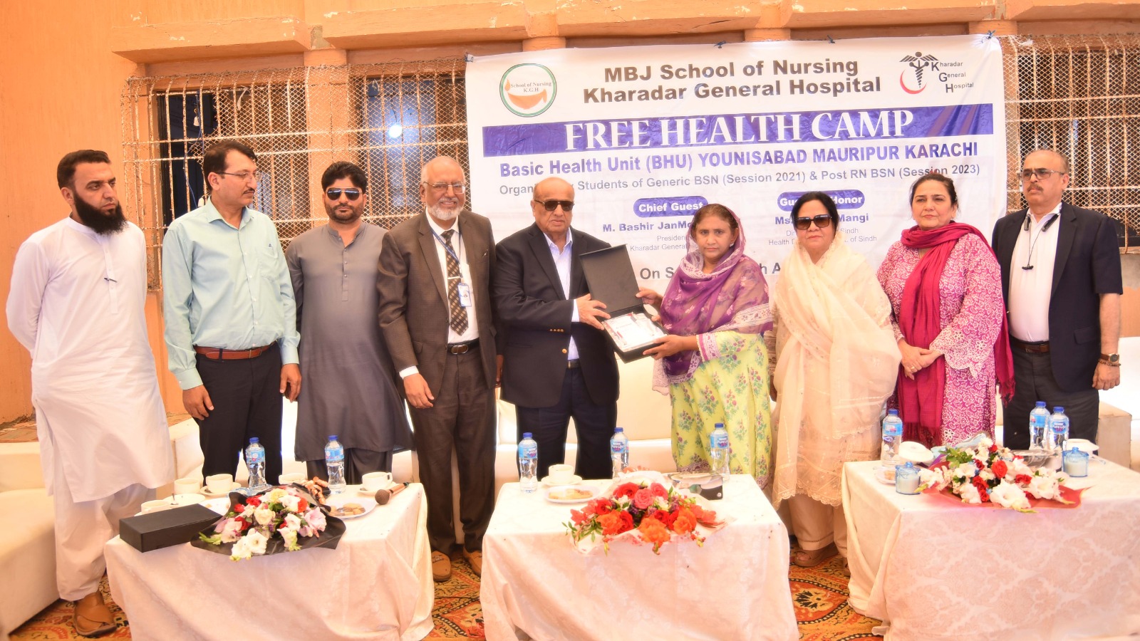 Karachi, April 15, 2026 — The Kharadar General Hospital School of Nursing organized a free health camp at the Hawke’s Bay Younisabad Basic Health Unit, providing medical services to hundreds of deserving patients in the area.