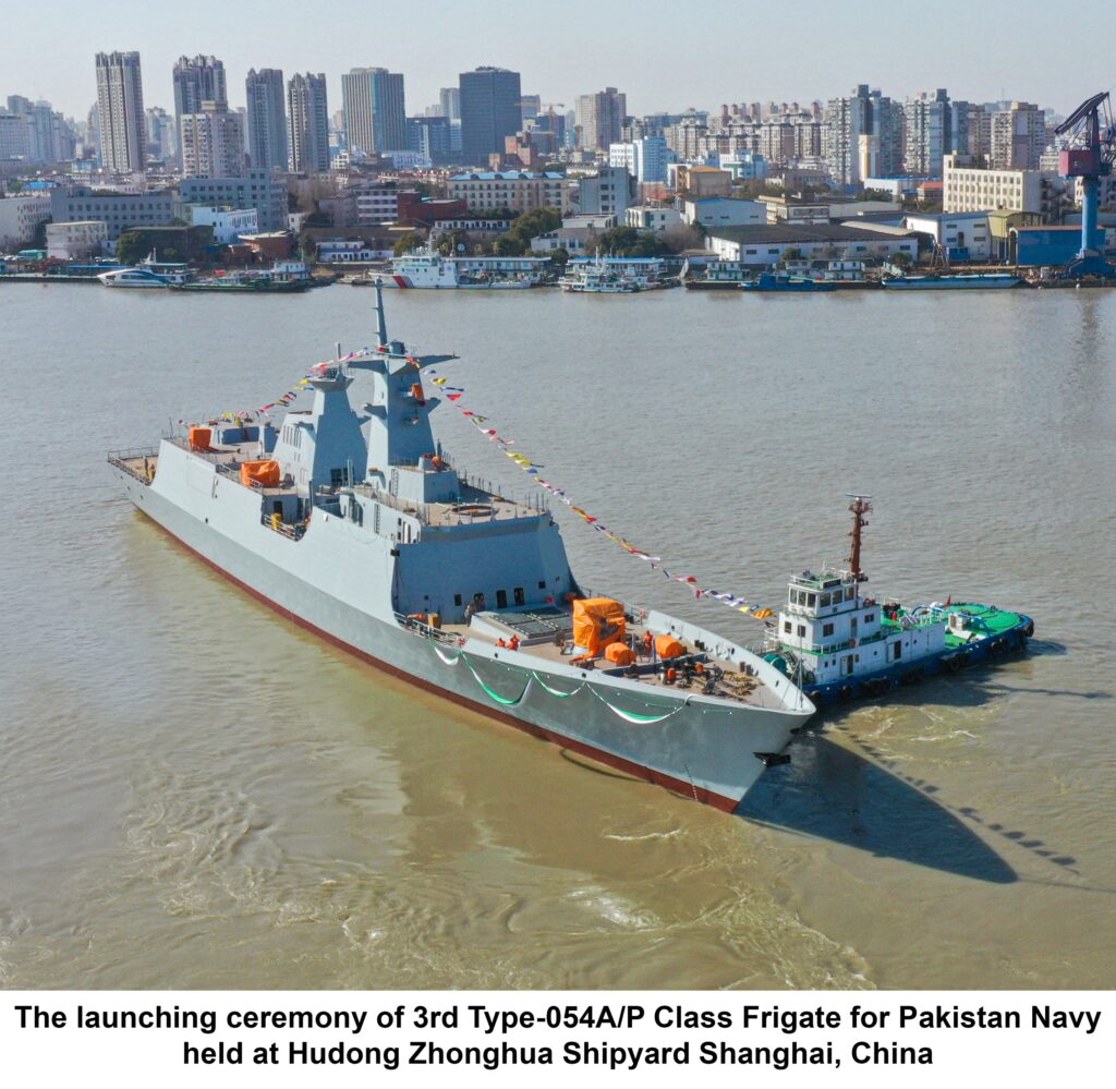 Pakistan Navy has contracted construction of Type 054 AP Frigates from China under a contract signed in 2017. The first –in-class Frigate was launched in August 2020, followed by Second Frigate Launching in January 2021 at Chinese Hudong Zhonghua Shipyard in Shanghai. Successful launching of 3rd Ship of the series is a testimony of deep rooted defence and diplomatic Sino-Pak relations.