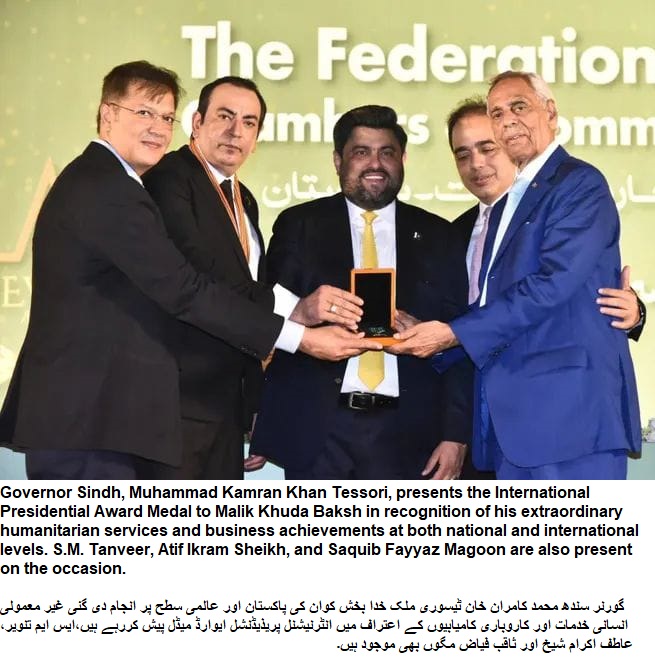 Malik Khuda Baksh received this distinguished honor for his tireless efforts in humanitarian service, both in Pakistan and internationally, carried out under the banner of Lions Club International, as well as his leadership in various business ventures, particularly in the energy sector.