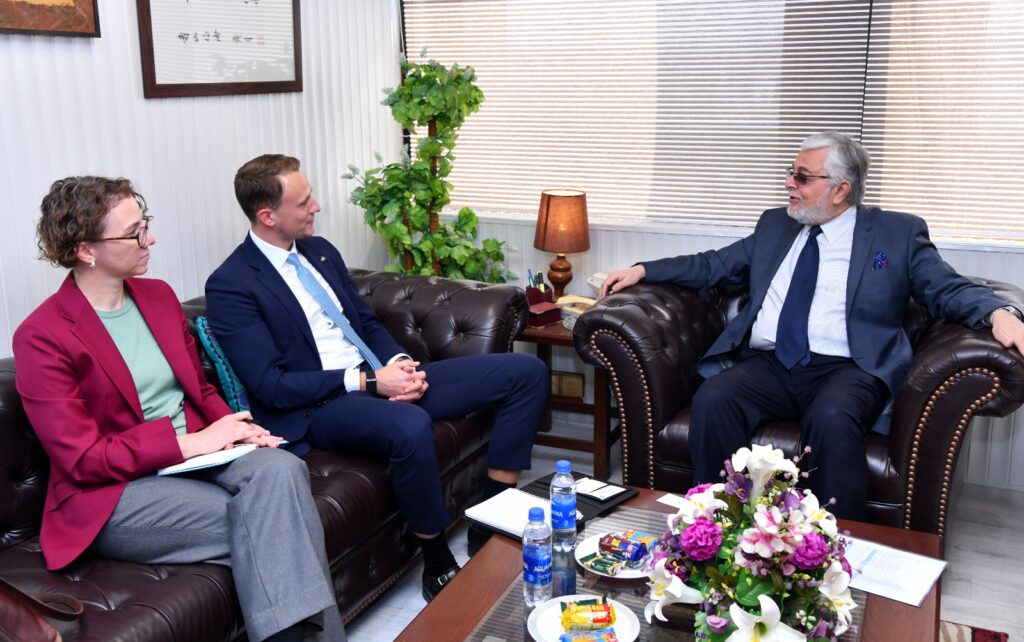 FoodAg Manufacturing and Health, Engineering & Minerals Show (HEMS) planned in Lahore on 26-27 February 2025 and 16-17 April 2025 respectively.The concerns regarding delays in business visas for exhibitors and business delegates for the events managed by TDAP were discussed and timelines for expediting the business visas was agreed. The steps taken by Government of Pakistan regarding compliance with the conditions of GSP Plus were also highlighted and the initiatives of TDAP during TEXPO-24 related to multiple Seminars on sustainability and climate change were discussed. Both sides explored opportunities to expand bilateral trade and investment by taking further collaborative steps. The meeting concluded on a positive and constructive note, signaling mutual commitment to strengthening economic ties between Pakistan and Germany.
