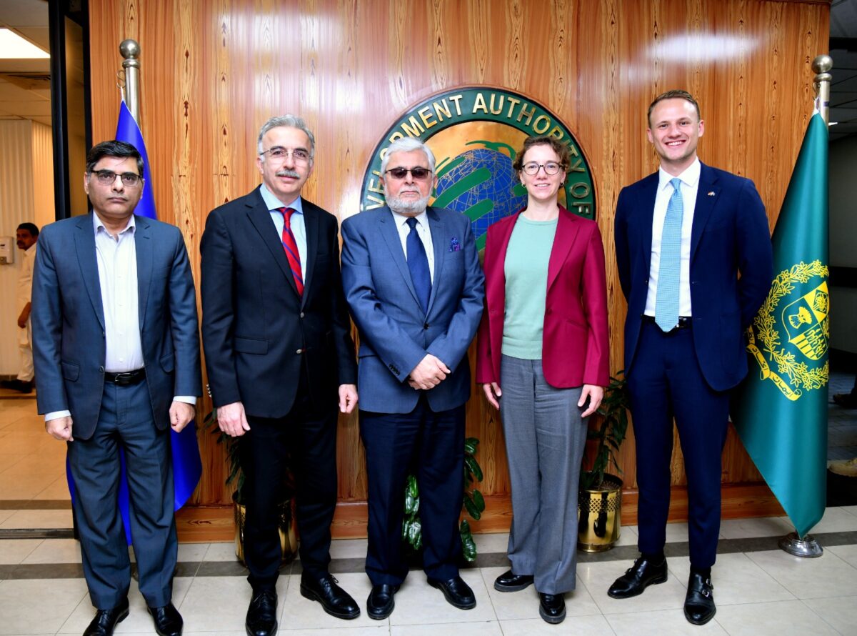 Karachi – Ms. Janine Rohwer from the German Embassy Economic and Political Section and Mr. Florian Walther from the German Chamber of Commerce & Industry, (AHK), met with the Chief Executive and Secretary of the Trade Development Authority of Pakistan (TDAP) today. The Director General of the Textile & Leather Division, also attended the meeting. The discussions revolved around areas of mutual interest, particularly trade and investment between Pakistan and Germany.