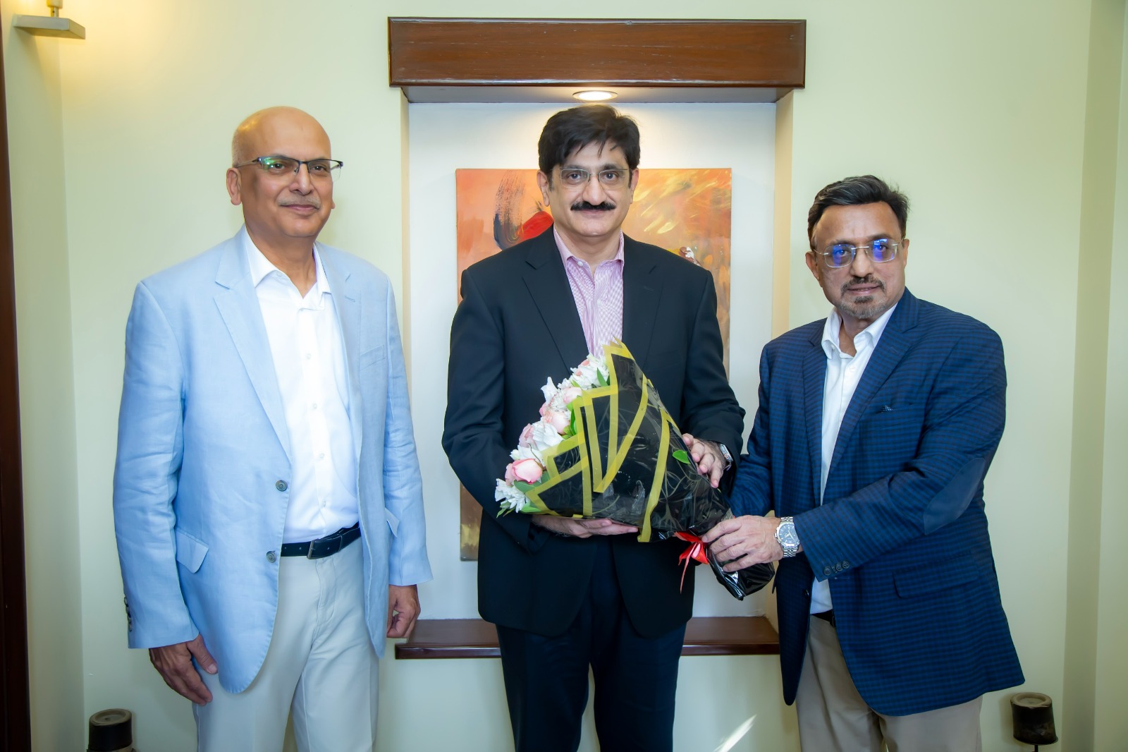 On the occassion Mr. Saleem Kassim Patel presented a bouquet to Chief Minister Syed Murad Ali Shah as a gesture of respect and appreciation, while Mr. Obaid Saleem Kassim Patel welcomed Minister Syed Nasir Hussain Shah with a bouquet.