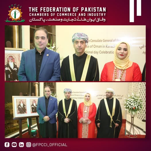 Karachi : Mr. Saquib Fayyaz Magoon, SVP FPCCI, had the distinct honor to represent country’s apex trade body in Oman National Day celebrations in Karachi in the esteemed presence of H. E. Engr Sami Abdullah Salim Al Khanjari, Consul General of the Sultanate of Oman in Karachi, Islamic Republic of Pakistan and H. E. Sheikh Syed Fayyaz Ali Shah, Sheikh of the Pakistani-Omani Community.