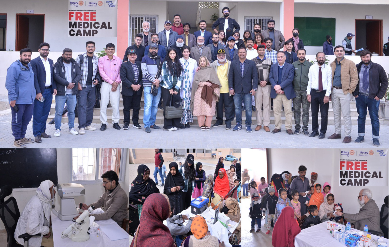He appreciated the efforts of the Rotary Club of Karachi, medical staff and volunteers and said that serving the deprived sections of the society is a common responsibility of all of us, and expressed the hope that such welfare initiatives will be continued in the future under the same spirit. On this occasion, former District Governor of Rotary International District 3271 Muhammad Hanif Khan expressed his views and said that organizing free medical camps in Manora and surrounding backward areas by the Rotary Club of Karachi Bay is a wonderful example of service to humanity. He said that provision of basic health facilities is the fundamental right of every human being, and such camps prove to be a ray of hope for those sections who are facing expensive treatment. Muhammad Hanif Khan said that the organization of this camp in collaboration with Pakistan Navy, Karachi Port Trust and other institutions is proof that through mutual cooperation and collective efforts, real help can be provided to the deprived sections of the society He paid tribute to the team of doctors and volunteers of the Rotary Club of Karachi and expressed the hope that Rotary will continue its welfare and humanitarian activities in the future under the same spirit.