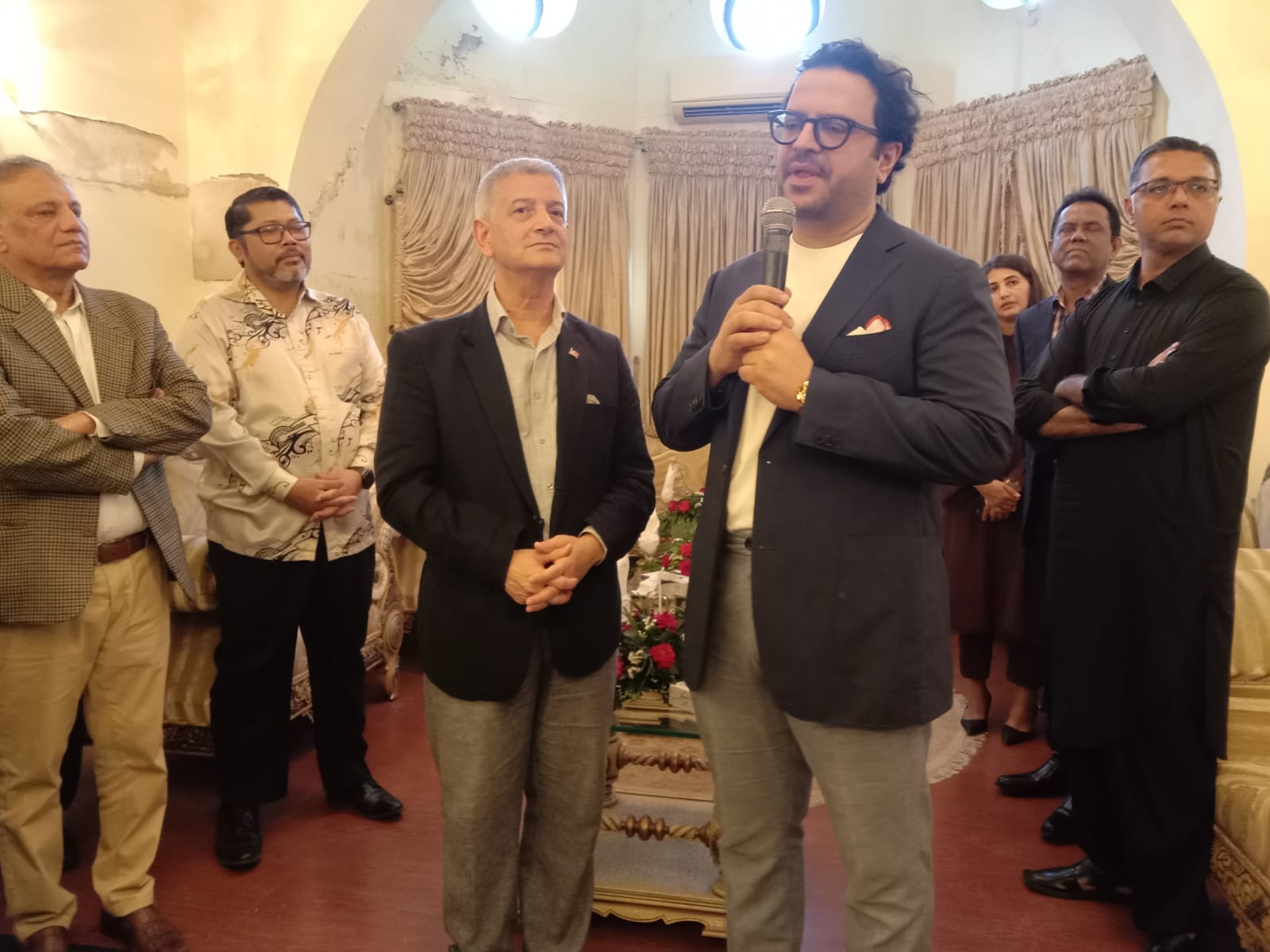 The reception was attended by former Governor and Interior Minister Lt Gen (R) Moinuddin Haider, many former Ambassadors, Deputy DG MOFA, Ms. Sadia Gohar Khanum, officer Ms. Marium, prominent celebrities, large number of diplomats based in Karachi, businessmen and industrialists.