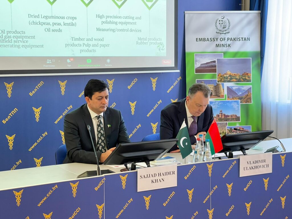 BELARUS – The Embassy of Pakistan, Minsk in collaboration with Belarusian Chamber of Commerce & Industry (BelCCI) organized a business interactive event at the BelCCI, which was attended by businessmen/representatives from more than 100 Belarusian companies, out of which 33 firms participated physically while another 72 businesspersons participated in the business event through Zoom on virtual basis.