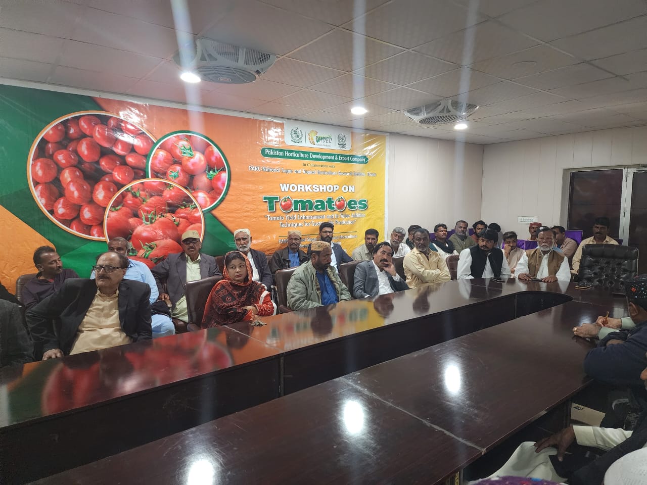 Tomato is one of Sindh’s key horticultural crops with annual contribution of about 25% to the total country’s production, contributing significantly to household income, local markets, and food processing industries. However, farmers continue to face challenges such as low productivity, pest and disease outbreaks, high post-harvest losses, and limited value-addition opportunities. To address these gaps, a dedicated workshop on “Tomato Yield Enhancement and Value Addition Techniques for Sustainable Production in Sindh” was conducted to build the technical capacity of growers, extension workers, and supply chain stakeholders.