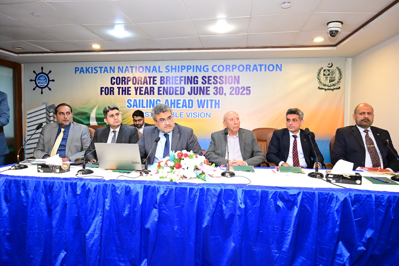 Karachi – 26 November 2025 : Pakistan National Shipping Corporation (PNSC) convened its Corporate Briefing Session (CBS) for the financial year ended 30 June 2025 at PNSC Building, Karachi. The session was attended physically and through online means by analysts, investors, and representatives of brokerage houses, whereas the senior management of PNSC shared the Corporation’s operational performance, financial results, fleet utilization, future business plans and key strategic developments.