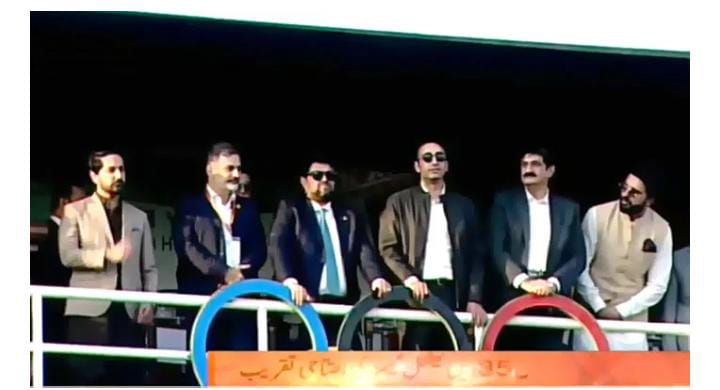 The ceremony was attended by special guest Pakistan Peoples Party Chairman Bilawal Bhutto Zardari, Governor Sindh Kamran Khan Tesori, Chief Minister Sindh Syed Murad Ali Shah, Sports Minister and President Sindh Olympic Association Sardar Muhammad Bakhsh Khan Mehar, President Pakistan Olympic Association Chaudhry Arif Saeed and others.