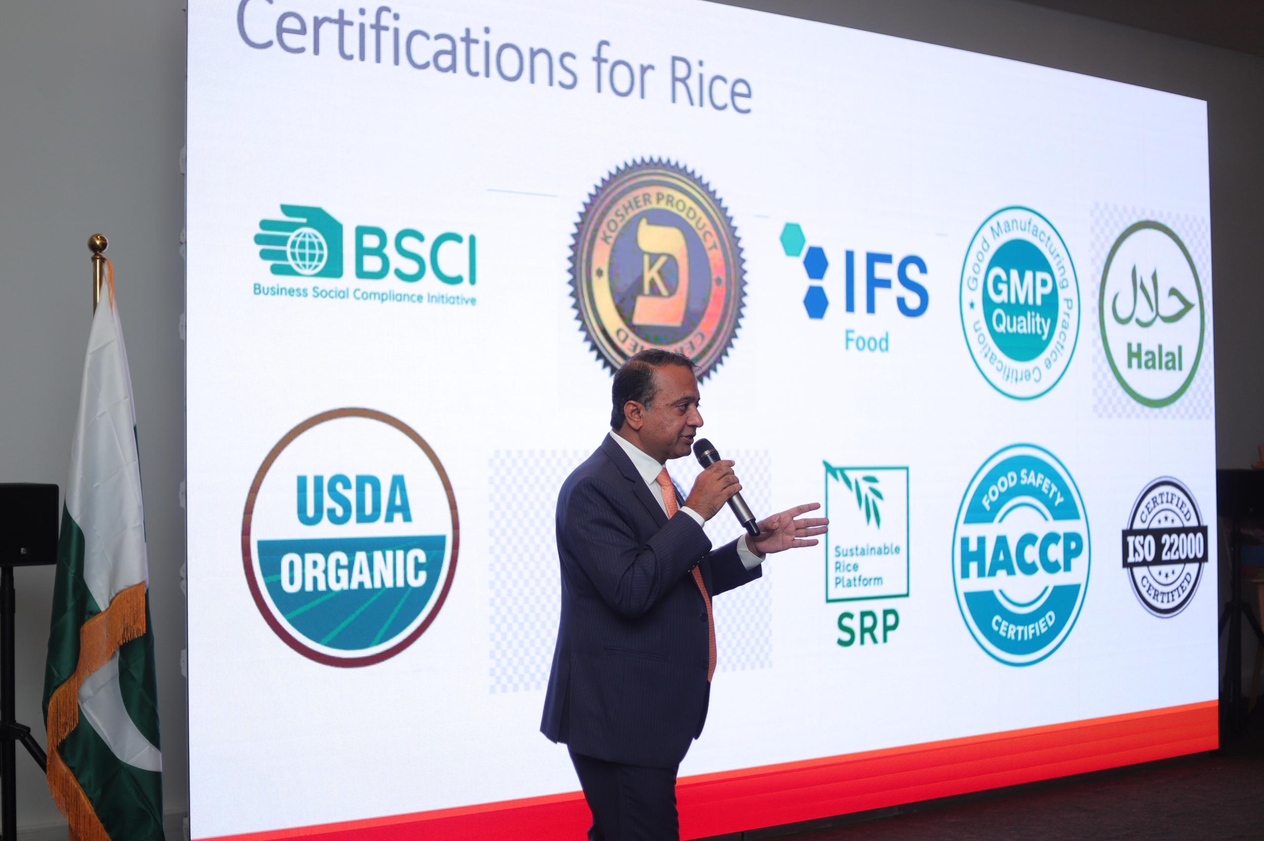 Mr. Athar Hussain Khokhar, Director General of Agro and Food at TDAP and Head of the Pakistani delegation, presented Pakistan's comprehensive rice value chain from cultivation to export. DG Khokhar demonstrated how Pakistan's rice processing involves multiple stages that enhance product quality, from primary processing of paddy rice to secondary processing that creates milled products. He emphasized Pakistan's climate-resilient varieties and robust supply chain capabilities, with main producing areas in Sindh and Punjab provinces ensuring consistent year-round production.