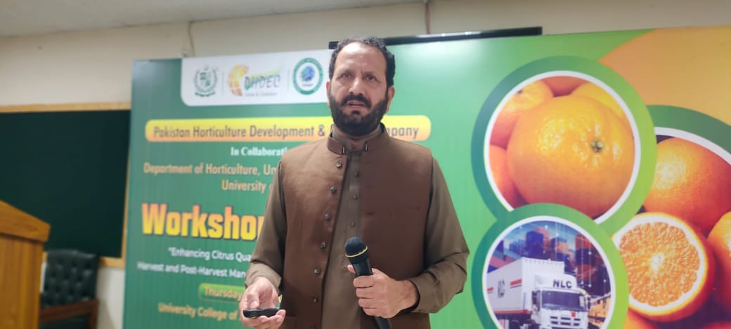 Sargodha, November 13, 2025 — Pakistan Horticulture Development and Export Company (PHDEC) organized a comprehensive workshop in Sargodha titled “Enhancing Citrus Quality and Export Competitiveness: Harvest and Postharvest Management and Efficient Logistics Solutions.” Sargodha, known as the citrus capital of Pakistan, plays a vital role in the country’s horticultural economy.