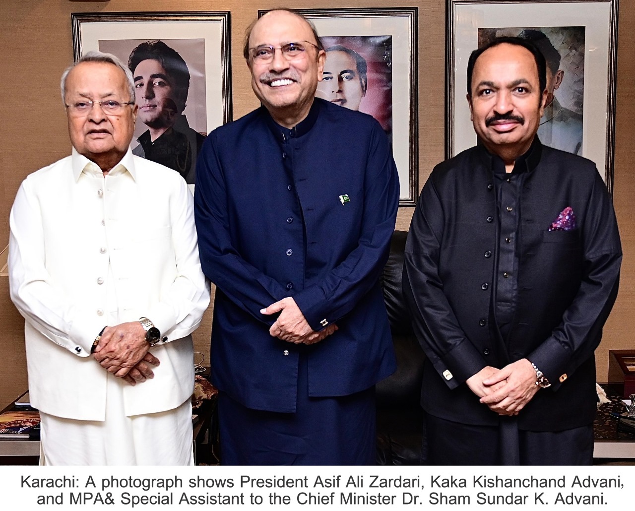 Karachi: Senior Pakistan Peoples Party (PPP) leader Kaka Kishanchand Advani and Member Sindh Assembly & Special Assistant to the Chief Minister Sindh for Minority Affairs, Dr. Sham Sundar K. Advani, called on the President of Pakistan, Mr. Asif Ali Zardari.