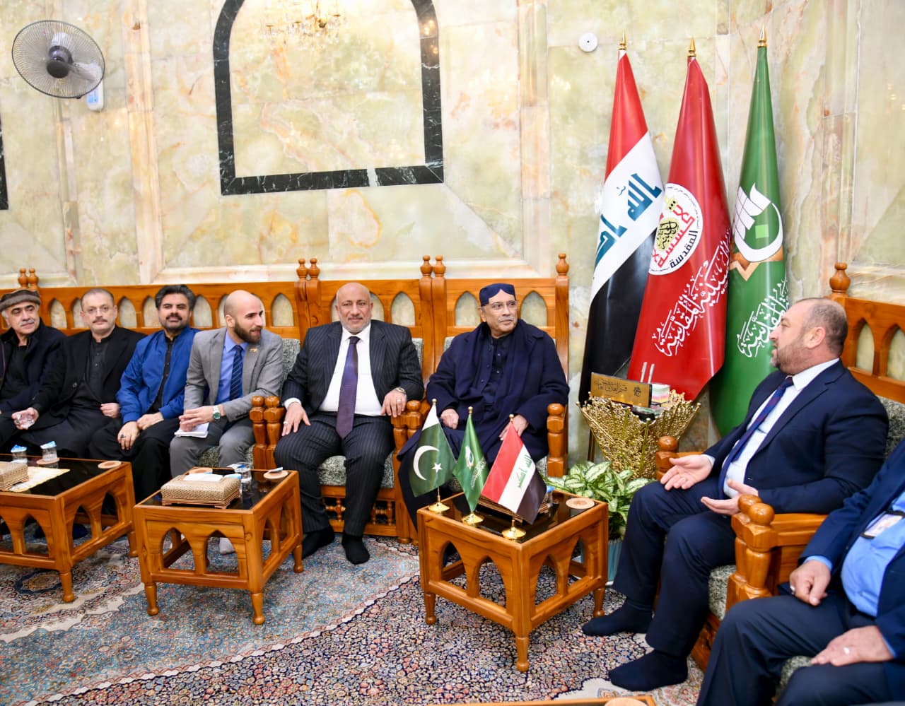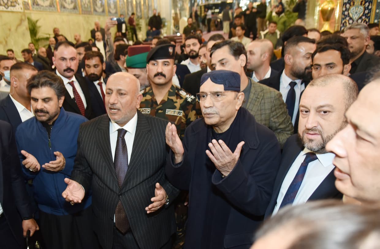 Karbala : President Asif Ali Zardari visited the shrines of Imam Hussain (RA) and Hazrat Abbas ibn Ali (AS) in Karbala. Accompanied by Governor Dr Nsayif Jassim Al-Khatabi, he offered prayers and prayed for peace, unity and security of the Muslim Ummah.