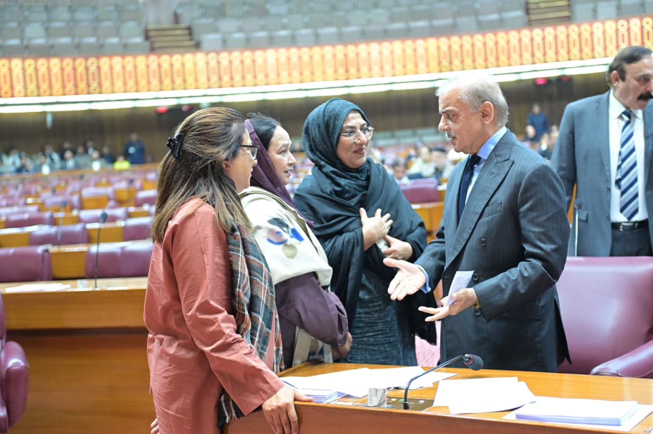 Islamabad : Prime Minister Muhammad Shehbaz Sharif interacts with the MNAs during the National Assembly session.