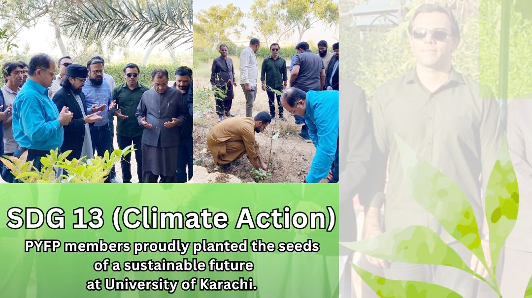 Karachi Pakistan : Professional Youth Foundation of Pakistan (PYFP) successfully organized a Plantation Activity at the University of Karachi under SDG 13 – Climate Action, promoting environmental responsibility among youth.