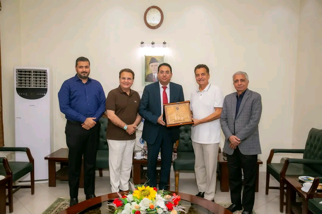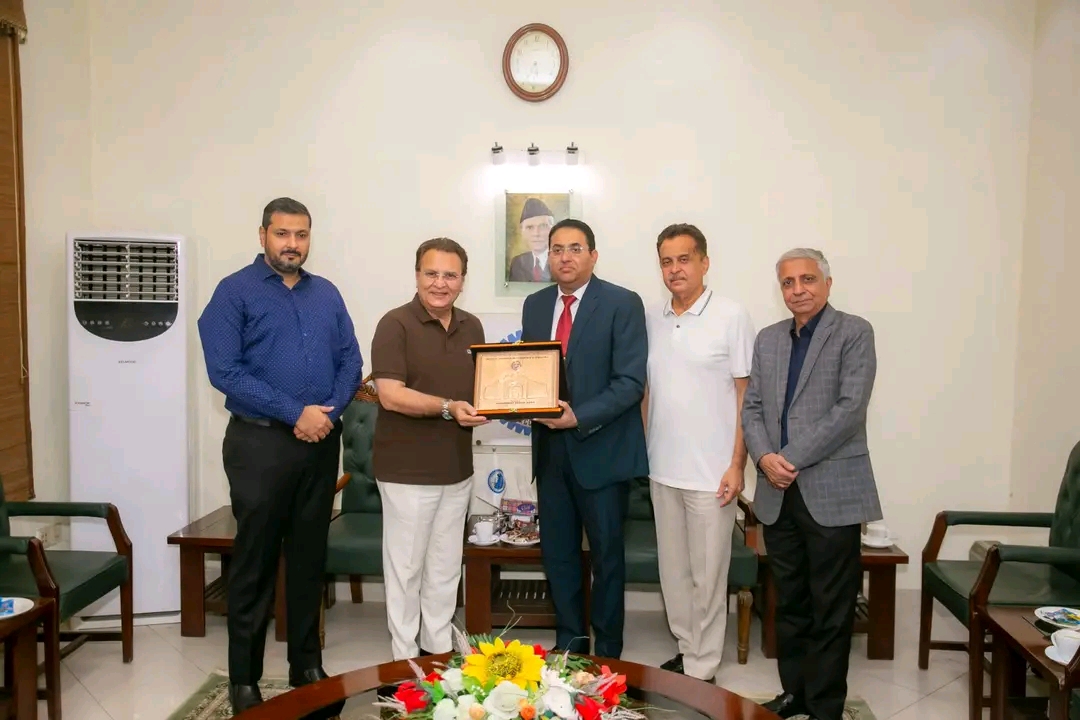 Prominent Celebrity Behroze Sabzwari and Former Olympian Hassan Sardar visited the Karachi Chamber of Commerce and Industry (KCCI) to congratulate the newly elected President KCCI Rehan Hanif, Senior Vice President Muhammad Raza and Vice President Muhammad Arif Lakhani.