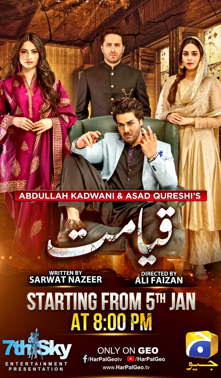 ‘Qayamat’ revolves around the story of a young and beautiful girl, who’s life is currently influenced by those around her. This is a story of a lower middle class family, with two daughters, Ifrah and Samra. When Samra’s parents make the most important decision of her life on her behalf, without her knowledge, it is followed by a tragic incident that leaves Ifrah in a difficult position. She is left with the choice of either following in her sister’s footsteps, or forsaking her true self in the pursuit of revenge.