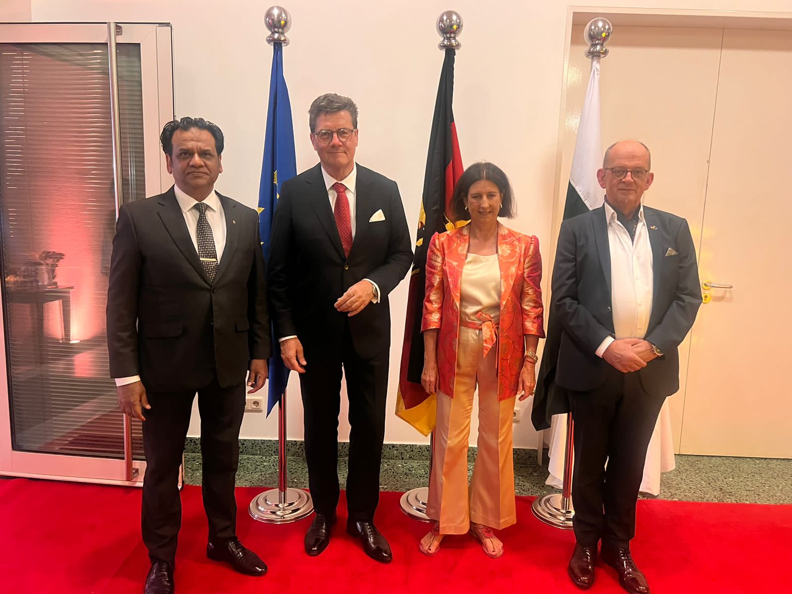 Karachi (Staff Reporter) A grand ceremony was held on the occasion of the 35th Unity Day of the Federal Republic of Germany. Diplomats, business figures and social leaders from different countries also attended the ceremony. Opportunities for promoting mutual relations, economic cooperation and development were discussed on the occasion of Germany’s National Day. On this occasion, Chairman KHA Business International Relations and Chief Executive Officer of Kafeel Group, Vice President of Rotary Club of Karachi Environment and Chairman Diplomatic Affairs Cape, renowned architect Kafeel Hussain congratulated the Consul General of the Federal Republic of Germany, Thomas E. Schulze and Katia Hoesel, and said that the relations between Pakistan and Germany are long-standing and based on mutual respect. He said that the two countries have always supported each other in various fields, especially in the fields of education, technology and trade. This occasion is a beautiful symbol of the promotion of friendship, cooperation and cultural relations between the two countries. Kafeel Hussain said that such ceremonies not only strengthen diplomatic relations but also create a positive impression on the public We hope that cooperation between Pakistan and Germany will expand further in the future. He said that the opportunities for foreign investment in Pakistan are vast. And there are bright prospects for German companies to invest in various industrial and commercial sectors here. Kafeel Hussain said that if the two countries put mutual cooperation into practice, new doors of development and prosperity could open in the region.