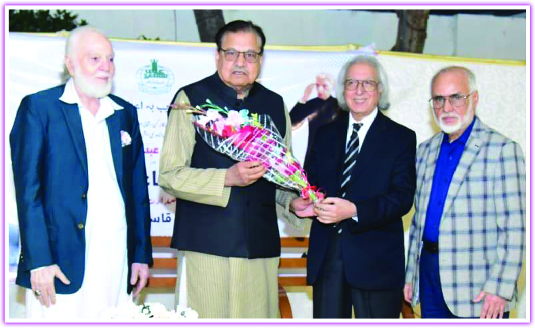 On this occasion, bouquets were also presented to the guest of honor, Dr. Abdullah. Senator Abdul Hasib Khan said that it is unfortunate that 6.2 million children in the country do not go to school, which requires urgent attention. He said that there is a need for people of status to go and help the poor, He said that after a long time, today we have witnessed such a gathering in which important poets and scientists like Dr. Abdullah are present.