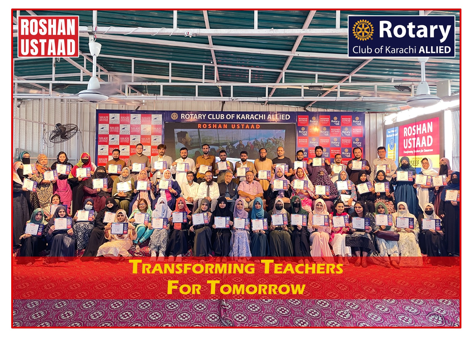 Karachi Pakistan : Rotary Club of Karachi Allied successfully conducted an inspiring session of the Roshan Ustaad – AI Tools Training for Teachers, a flagship initiative designed to modernize teaching practices and promote a shift from memorization-based learning to concept-driven, technology-supported education across Sindh.