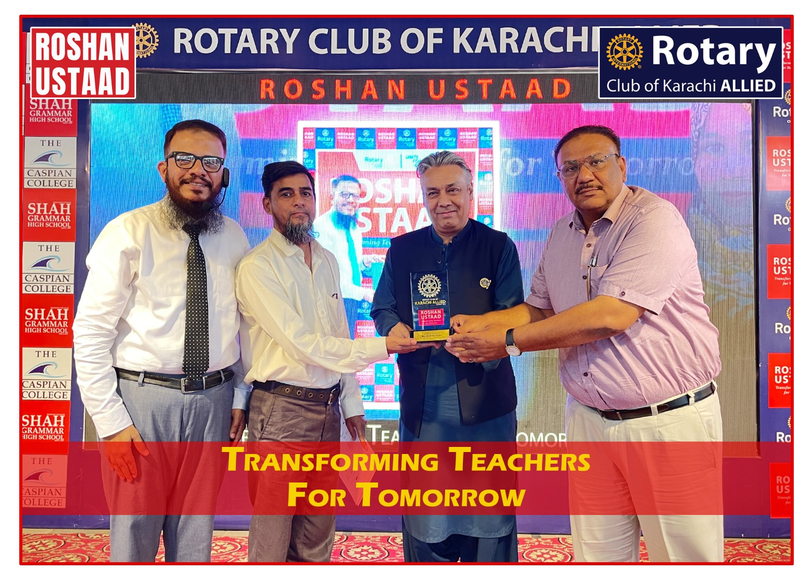 As a gesture of respect and gratitude, the members of Rotary Club of Karachi Allied presented Rtn. M. Ali Haider with a Token of Appreciation – Roshan Ustaad Shield, acknowledging his presence and encouragement.