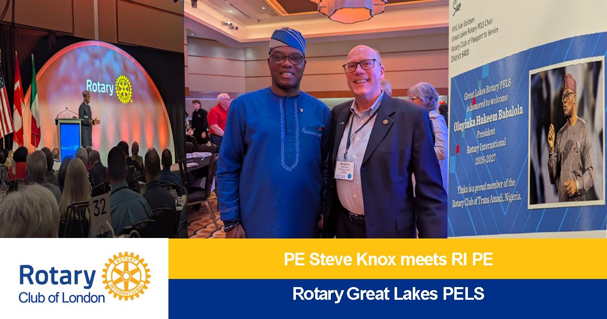 London : The Future of Rotary in London gets a boost in Kalamazoo! Our incoming President, Stephen Knox, (2026- 2027) attended the Great Lakes Rotary President Elect Leadership Seminar in Kalamazoo, MI. He’s honing leadership skills, connecting with fellow future leaders, and had the pleasure of meeting the 2026-2027 Rotary International President, Olyinka Hakeem Babalola, from Nigeria. Seminars like this provide an incredible chance for young professionals to expand their horizons globally! A good reason to consider joining Rotary www.rotarylondon.org#LeadershipGrowth #GlobalPerspective