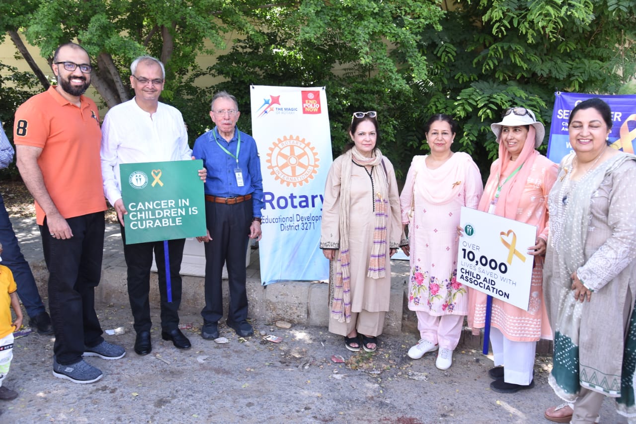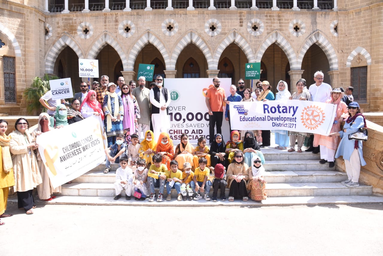 Karachi (Staff Reporter) The month of September is celebrated as Child Aid Cancer Awareness Month worldwide. In this regard, the Child Aid Association (CAA) organized various activities during this month to highlight the importance of timely diagnosis, treatment and community support for cancer in children. As part of these activities, a Walk of Hope was organized at Frere Hall in collaboration with the Child Aid Association (CAA) and the Rotary Club of Educational Development .