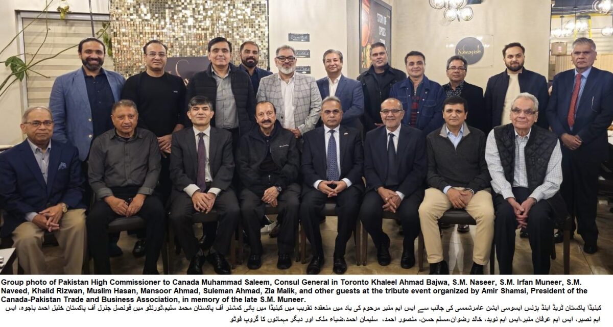 These thoughts were expressed by members of the Pakistani diaspora in Canada during a heartfelt dinner hosted by Amir Shamsi, CEO of Universal Promotions and President of the Canada-Pakistan Trade and Business Association, in loving memory of the late S.M. Muneer.