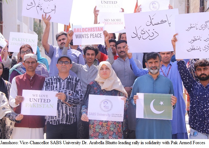 Forces and condemn the recent attack on a train in Balochistan. The rally, led by Vice-Chancellor