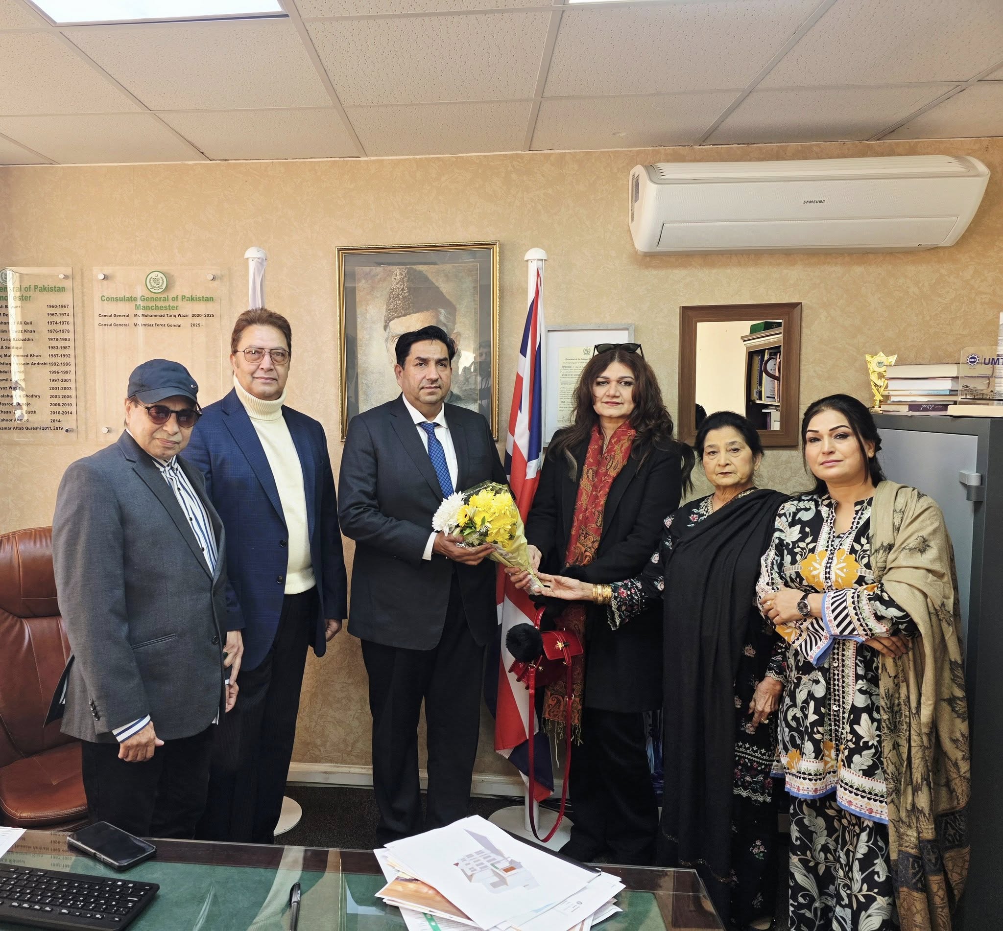 Saibaan Almi Adbi forum Manchester’s members were honoured to visit Pakistan Counslate and had a wonderful meeting with Counslate general Mr Imtiaz Feroz Gondal on 19th November 2025 . Saibaan team members CEO Faiqa Gul Sahibzada and President Saibaan Almi Adbi forum Manchester Humayun Sahibzada, vice president Saibaan Almi Adbi forum Manchester Naheed Chowdary, vice president Saibaan Almi Adbi forum Manchester Zaheer Lakheera, and executive member Farida Lakheera and Coordinate Saibaan Almi Adbi forum Manchester Liaqat Ali Ahed discussed the importance of Urdu Adab in our culture and how to promote it in western society.