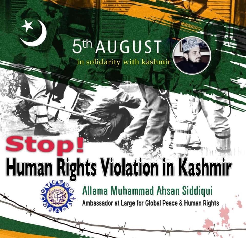 The Ambassador Human Rights & Global Peace Imam Allama Ahsan Siddiqui said it was no secret that India had taken its illegal and unilateral actions on 5 August 2019 to suppress Kashmiris’ freedom struggle, deny them their right to self-determination and change the demographic structure of the valley. He said that Indian atrocities committed in IIOJK were well documented by the UN and other international human rights organizations and even the Human Rights Watch, in a statement earlier this week, had confirmed that the Indian authorities were restricting free expression, peaceful assembly and other basic rights in Jammu and Kashmir.
