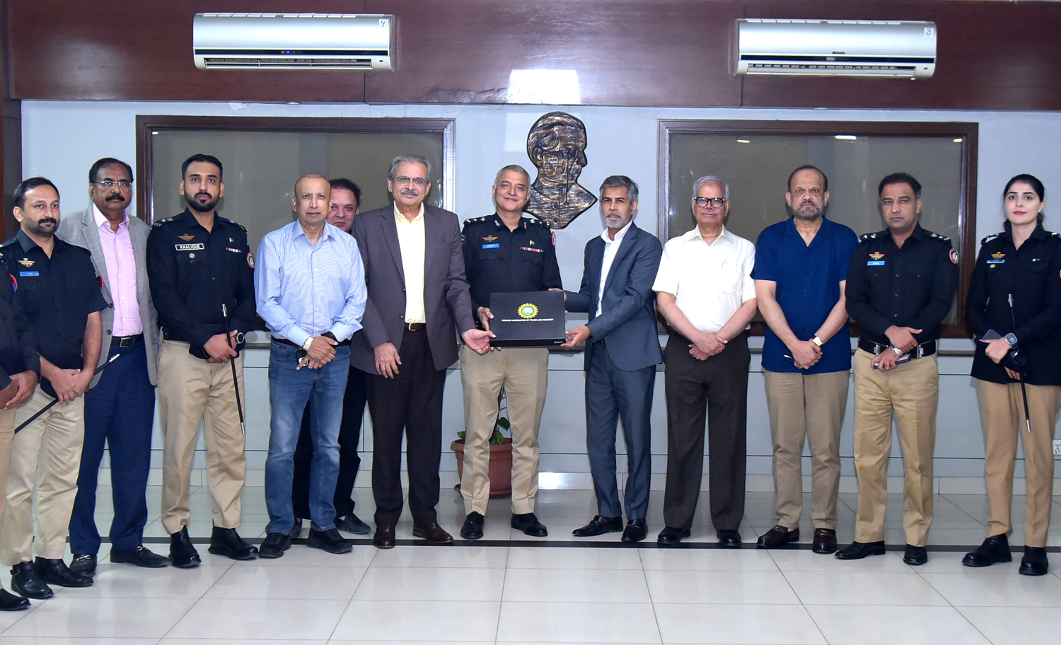 Khalique Pirzada, SP Landhi Dr. Faiza Sodhar, SP Traffic Majnoon Khan Unar, and DSP Korangi Aslam
