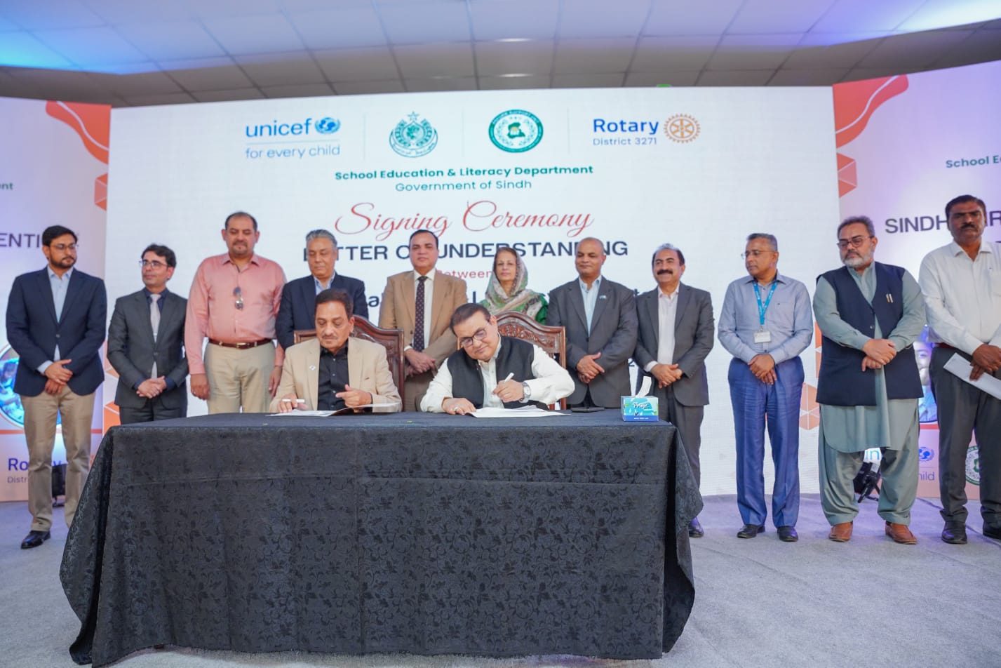 The launch event was attended by key dignitaries, including Secretary SELD Mr. Zahid Ali Abbasi; Dr. Junaid Hameed Samo, Chief Program Manager, Reform Support Unit (RSU); Mr. Prem Bahadur Chand, Chief Field Officer, UNICEF Sindh; and Mr. Muhammad Iqbal Qureshi from the Pakistan Rotary Literacy Mission, M. Ali Haider Deputy Governer Rotary. Representatives from Muslim Hands and National Commission for Human Development (NCHD), along with development partners, academia, civil society, and senior officials from various SELD wings, including Directors and District Education Officers (DEOs), also participated.