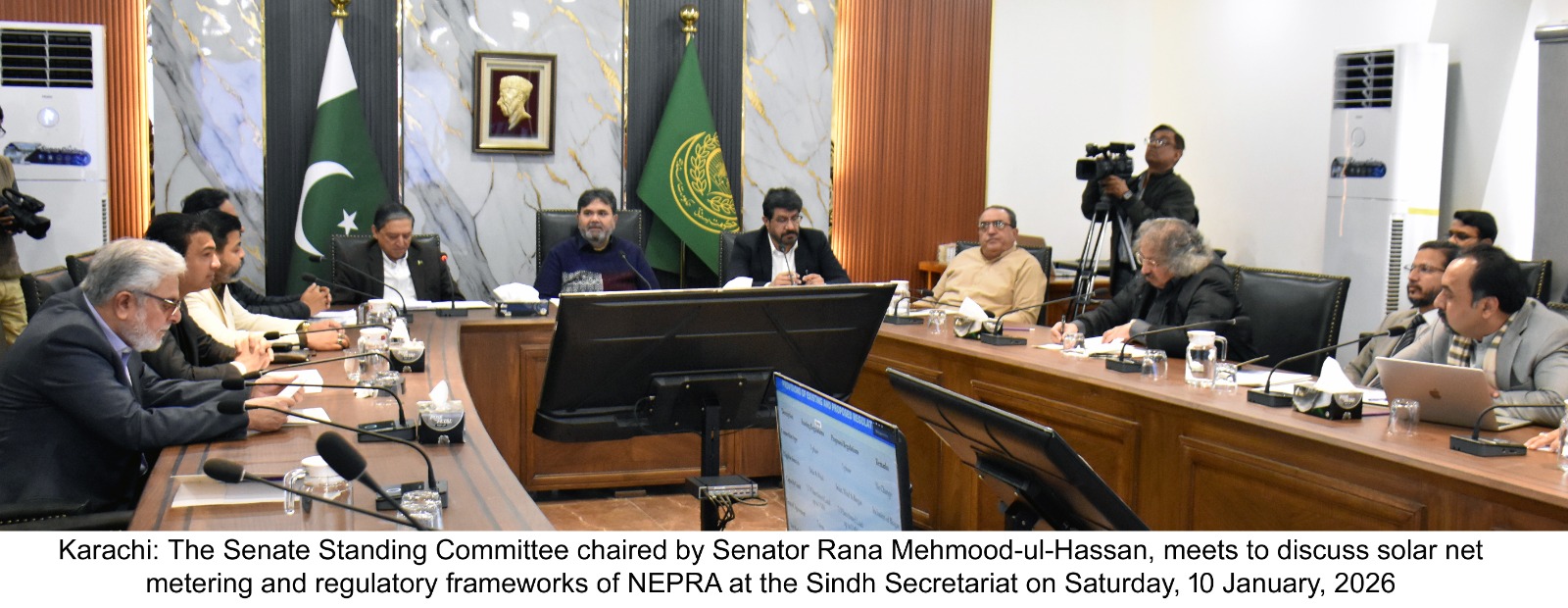 The meeting, chaired by Senator Rana Mahmood-ul-Hassan, was convened to review the Solar Net Metering Policy and other regulatory matters. Senators Kazim Ali Shah, Muhammad Abdul Qadir and Atta-ur-Rehman attended, while Sindh Assembly members Shariq Jamal and Asif Musa participated at the committee’s invitation. Prominent businessman Zubair Motiwala was also present.