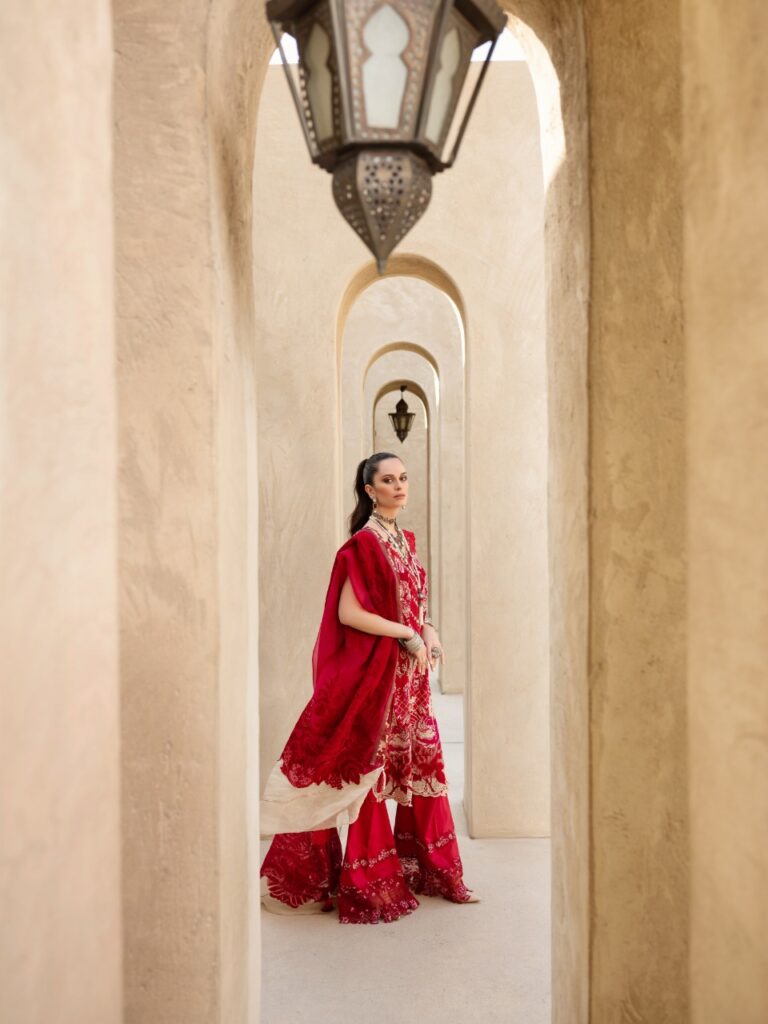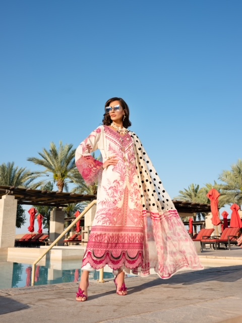 The eminent designer, Shiza Hassan says, “We have worked tirelessly during these times as well and tried not to hold off anything in terms of bringing it to the clients. We are looking forward to a great response because this time, the struggle has been very real. We have slogged away for bringing something entirely different from our previous collections to keep that pizzazz and essence alive in every client’s style. Through my designs, I try to give people the margin to make their own fashion statement and be their own stylist creating a sense of comfort and luxury that is unique from the rest. And my reason to choose Bab Al Shams in Dubai as a shoot location was always on my dream list for years that has finally been translated into reality. I particularly went all the way to shoot in that gorgeous surrounding to bring out the best of our lawn details”.