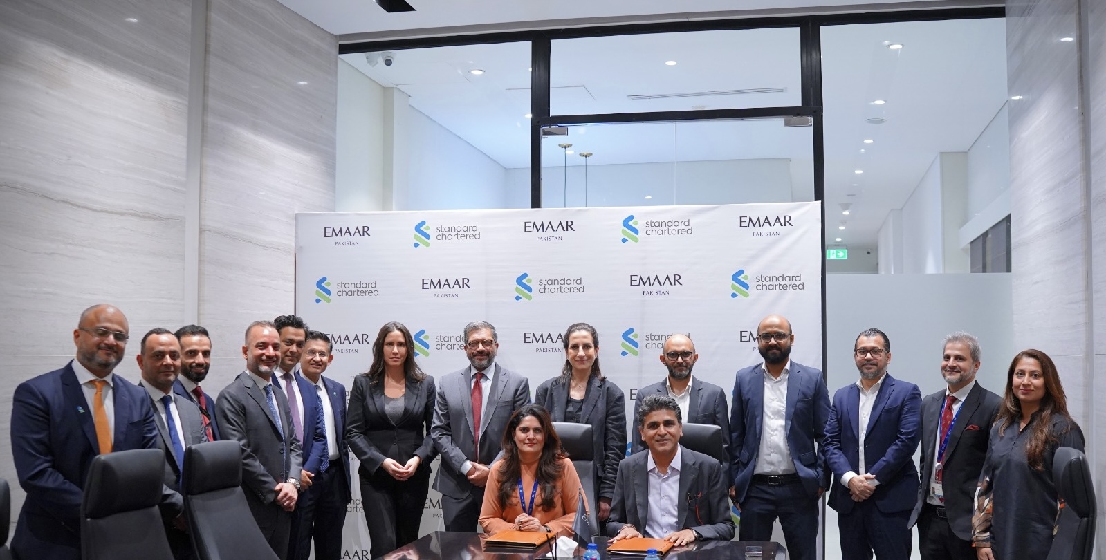 The agreement was signed by Saadya Riaz, Head Wealth & Retail Banking, Standard Chartered Pakistan, and Aziz Jindani, Chief Executive Officer, EMAAR Pakistan. Present at the signing from SC Pakistan were senior management officials, including Arslan Nayeem, Head of Coverage Pakistan, Shada El Borno, Regional Head of Global Subsidiaries UAE, ME & Pakistan, and Motasim Iqbal, Regional Head Corporate Sales, MEA & P. EMAAR Pakistan was represented by Ali Baig, Chief Financial Officer, and Asim Khan, Senior Manager, Finance.
