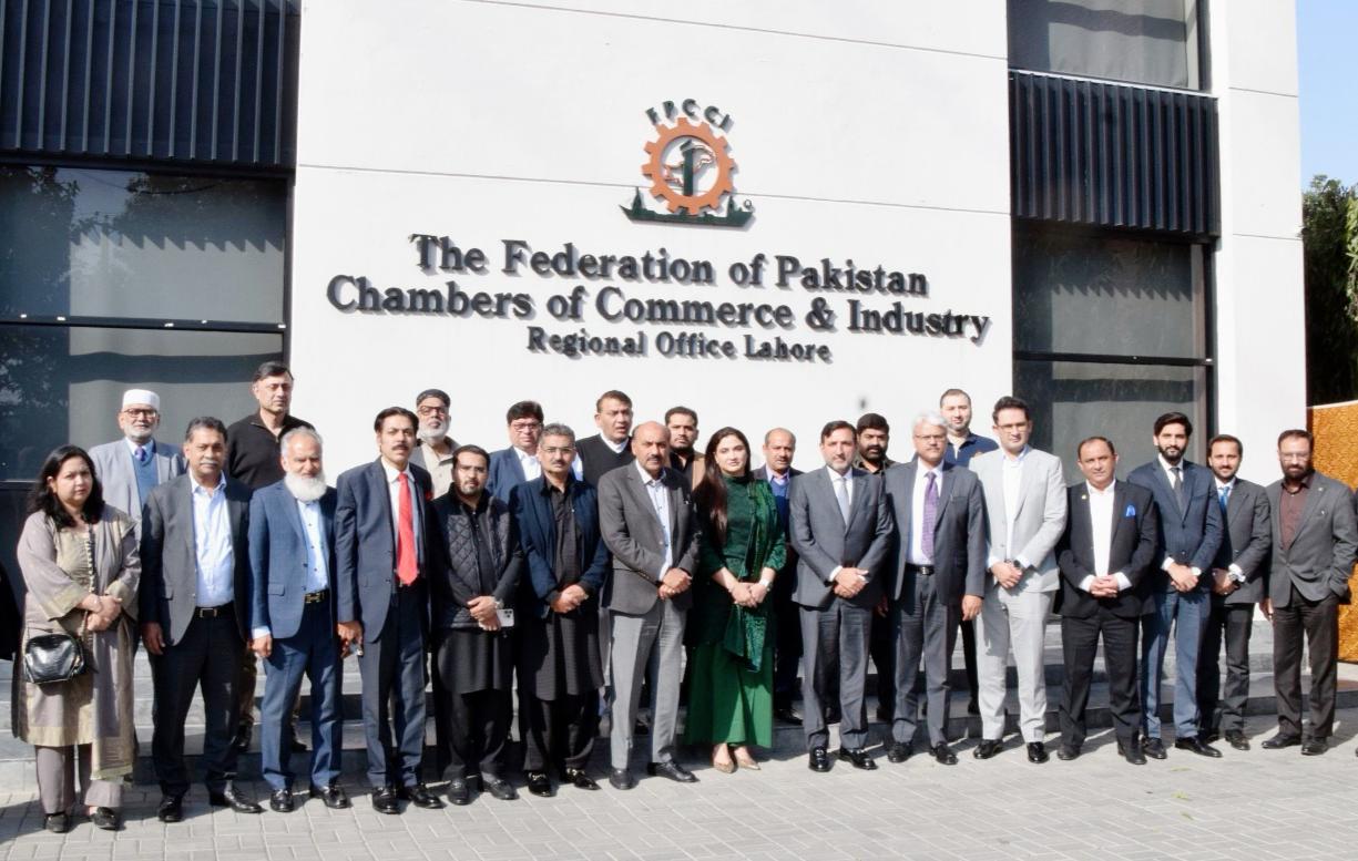 Lahore, February 12, 2025 — Mr. Faiz Ahmad Chadhar, Chief Executive of the Trade Development Authority of Pakistan (TDAP), along with Ms. Rafia Syed, Director General TDAP Punjab, visited the Regional Head Office of the Federation of Pakistan Chambers of Commerce and Industry (FPCCI). They were warmly received by Mr. Zaki Ejaz, Regional Chairman FPCCI, along with members of the Executive Body and the business community.