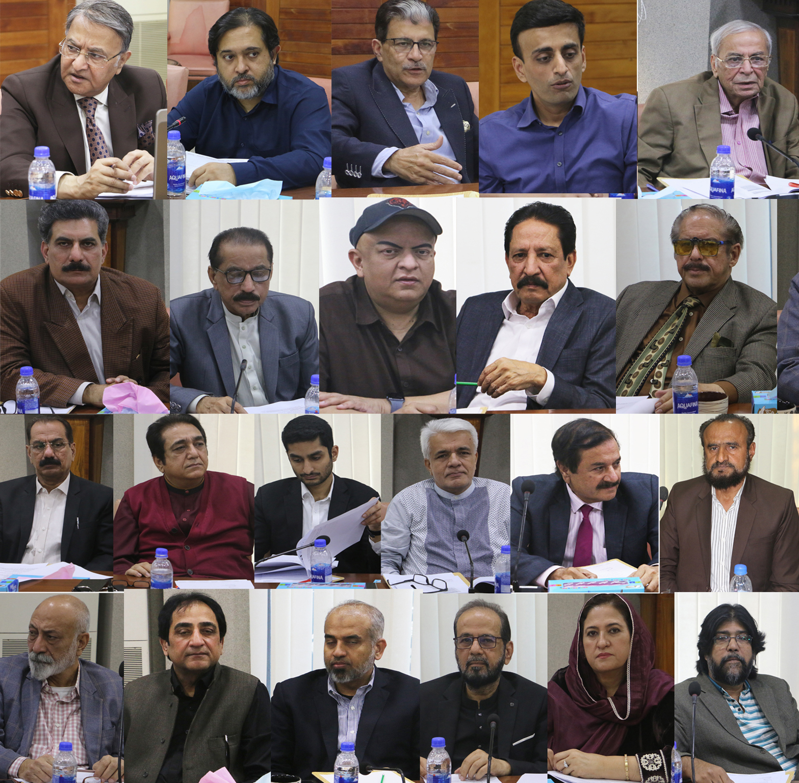 Senator Sarmad Ali, President, Mr. Shahab Zuberi, Vice President, Mr. Muhammad Athar Kazi, Secretary General, Mr. Mohsin Bilal, Joint Secretary, Mr. Mohsin Seyal (Aftab), Mr. Bilal Farooqui (Aghaz), Mr. Najamuddin Sheikh (Deyanat), Mr. Muhammad Younus Mehar (Halchal), Kazi Asad Abid (Ibrat), Syed Akbar Tahir (Jasarat), Mr. Faisal