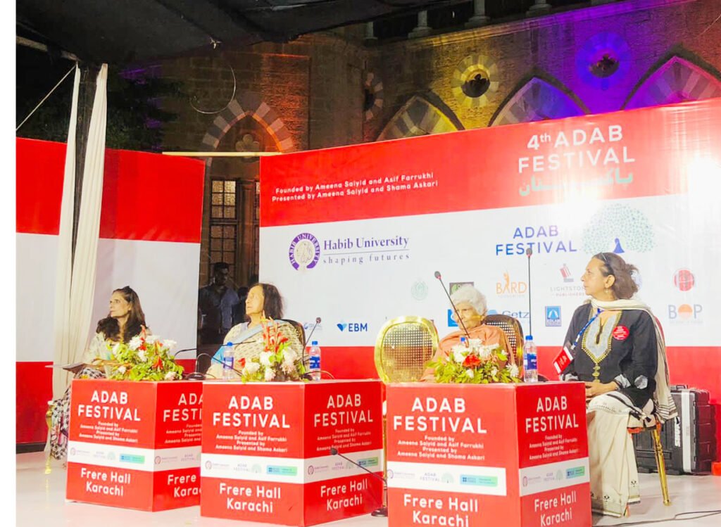 Karachi: After the resounding success of day one of the Adab Festival, the second day was even more packed with people of all ages pouring in through the day. Every space, session, children’s tent, art exhibit, book and education fair, and food court was overflowing with people especially women, children, and the youth.
