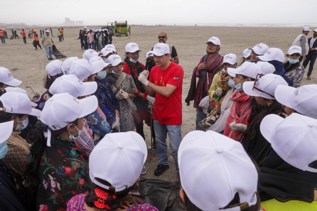 Karachi, August 25, 2025 – U.S. Consul General Scott Urbom joined hands with 200 young participants of the U.S. government-supported English Access Program in a beach cleanup activity at Clifton on August 23. The initiative, organized by the Society for International Education (SIE), underscored the role of civic responsibility, youth leadership, and community service in creating positive change.