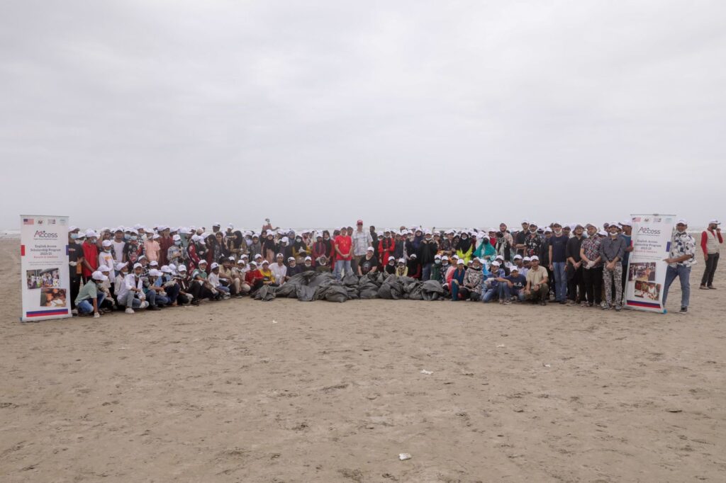During the drive, Access students, alumni, American diplomats, and program staff collected litter such as plastic bottles, paan wrappers, and sand-filled jute bags, showcasing how collective action can improve the environment. Addressing the volunteers, Consul General Urbom emphasized the impact of civic engagement.