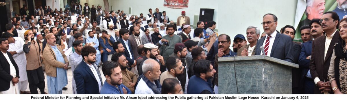 Karachi, January 06 2025 : Federal Minister for Planning, Development and Special Initiatives Mr. Ahsan Iqbal, this day, paid a visit to Karachi where he held meetings with different stakeholders of the Sindh Province. Similarly, he visited PMLN House Sindh where he met party leaders and workers from Sindh and held press conference.