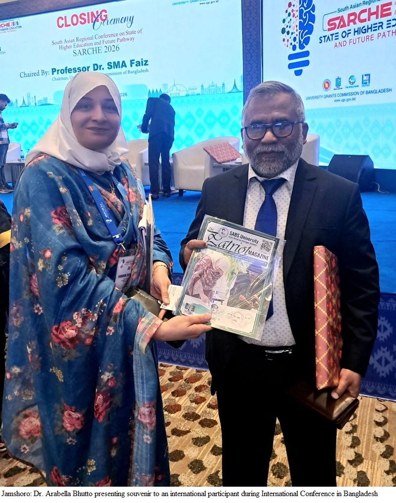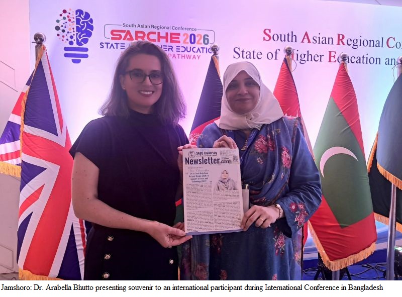 Jamshoro (January 16, 2026): Vice-Chancellor of Shaheed Allah Buksh Soomro (SABS) University of Art, Design and Heritages Jamshoro, Prof. Dr. Arabella Bhutto, played a prominent role as representative of Pakistan at the South Asian Regional Conference on State of Higher Education and Future Pathway (SARCHE 2026), held in Dhaka from January 13 to 15. A Higher Education Commission led delegation of Vice-Chancellors from Pakistan and only Vice-Chancellor from Sindh, Prof. Dr. Arabella Bhutto participated in the Conference.